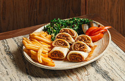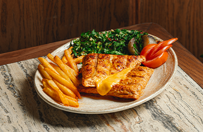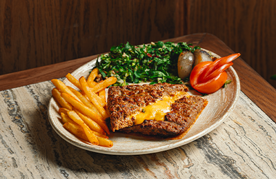 لحم مشوي ومحشوة بالجبنة، بنكهات متجانسة تعطي تجربة طعم متكاملة