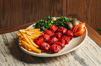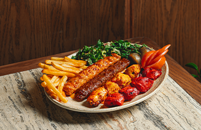 مزيج من اللحوم الحمراء والبيضاء، تضم أربعة أسياخ من شيش طاووق، كباب دجاج، كباب لحم، شيش تندوري، تُقدّم مع بطاطا مقلية وخضار مشوية